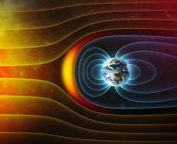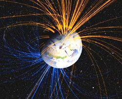 Astfel, ceea ce se petrece în realitate este că acest câmp magnetic sau magnetosfera Pământului este creată de către forţele de respingere, iar forţele de atracţie reprezintă gravitaţia sau câmpurile gravitaţionale. Este întocmai ca atunci când ai un magnet solid. Un magnet solid are un pol nord şi un pol sud. Când ai un pol nord împreună cu un pol sud, aceşti poli se atrag iar aceasta este gravitaţia. Iar atunci când ai un pol nord şi un alt pol nord, aceşti doi poli se resping unul pe celălalt, aşa că acesta devine câmp magnetic ori, altfel spus, o forţă de respingere…