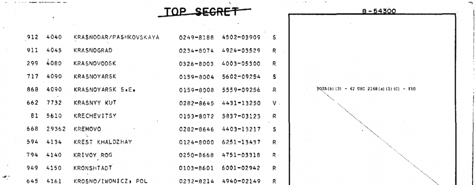Lista din timpul Războiului Rece a celor 1.200 de orașe vizate