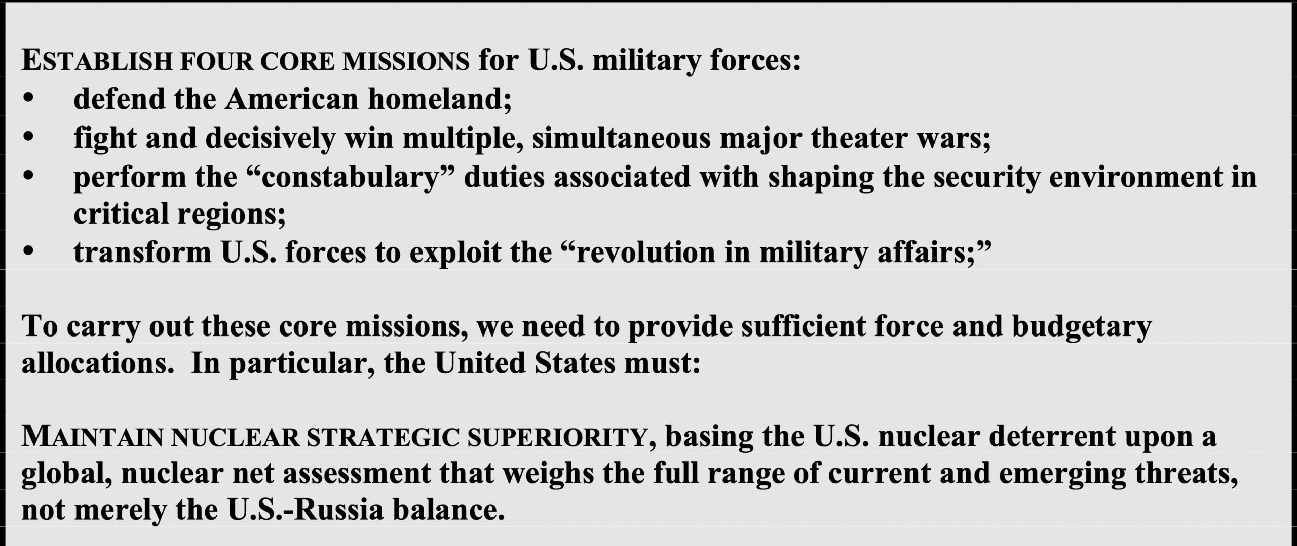Acest aspect este subliniat clar în „Proiectul pentru noul secol american” (PNAC) al NeoCons: