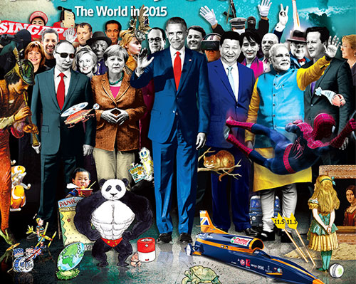 Coperta publicaţiei The Economist este plină de simboluri criptice şi de predicţii cumplite pentru anul 2015