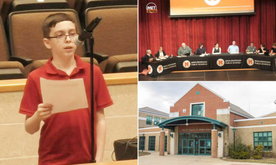 Un băiat de 12 ani povestește comitetului școlar de ce a fost exmatriculat din clasă și dat afară din școală după ce a purtat un tricou