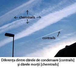 Dârele morţii (chemtrails-uri), ce constau atât din felurite substanţe chimice extrem de nocive pentru sănătate, cât şi din mai mulţi viruşi mortali ce au fost creaţi în anumite laboratoare secrete prin manipulări genetice, sunt pulverizate în atmosferă cu ajutorul avioanelor şi constituie unul dintre mijloacele prin care aşa-zişii „iluminaţi“ (capii ascunşi ai sectei satanice mondiale a Francmasoneriei) profită de apatia, de inconştienţa şi de ignoranţa marilor mase de oameni, pe care se străduiesc să le manipuleze, să le îndobitocească şi să le împuţineze prin anumite căi. Ei încearcă la ora actuală să-şi ducă la îndeplinire planul criminal de reducere drastică a populaţiei globului până la 1 miliard de fiinţe umane.