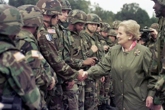 Politico o numește pe Albright ca fiind „una dintre icoanele luptei pentru libertate din Kosovo”. În calitate de Secretar de Stat al SUA în perioada 1997-2001, ea a cerut în mod agresiv „intervenția” NATO în Iugoslavia și a cerut privatizarea industriei și resurselor țării, entități economice care la momentul bombardamentelor erau în mare parte deținute de muncitori. Asaltul aerian al colonialismului occidental de 78 de zile asupra Iugoslaviei a distrus doar 14 tancuri sârbești, în timp ce a decimat 372 de instalații industriale, lăsând multe sute de mii de oameni fără locuri de muncă. Alianța militară a luat îndrumări de la corporațiile americane cu privire la ce întreprinderi economice se dorește să fie țintite și distruse.