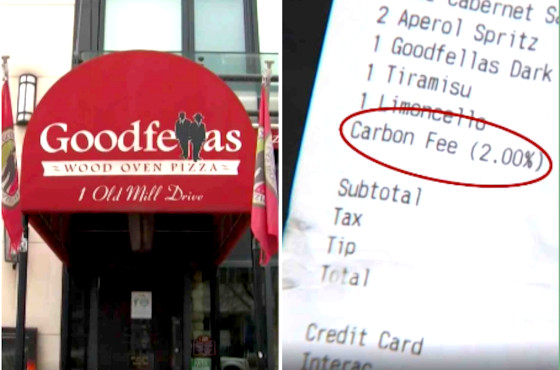 Un lanț de restaurante din zona Toronto a început să perceapă tuturor clienților o taxă de carbon pentru fiecare notă de plată. Goodfellas Wood Oven Pizza are șapte locații în zona Greater Toronto și acum adaugă o taxă de carbon de 2% la toate comenzile.