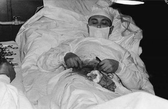 Cei doi „asistenți” au fost învățați ce să facă dacă chirurgul-pacient și-ar fi pierdut cunoștința, cum să efectueze ventilația artificială și să-i administreze injecțiile cu adrenalină. Firește, anestezia generală era exclusă, dat fiind că pacientul era și chirurgul care urma să efectueze dificila intervenție.