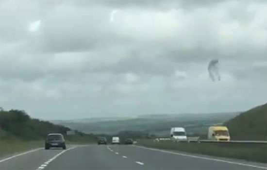 Le photographe Shayne House a repéré cet engin non identifié, qui semblait disparaître et se rematérialiser, sur l’A30, le même jour. Il l’a filmé et a même réussi à obtenir un gros plan. Il a déclaré sur Twitter : « Qu’est-ce que c’est ? Est-ce un vaisseau spatial extraterrestre au-dessus de l’A30 ? »