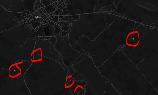 En Irak, par exemple, la carte générée par Strava est majoritairement sombre, signe d’une faible utilisation de l’application. Mais plusieurs bases militaires bien connues où sont stationnées les forces américaines et leurs alliés apparaissent en contraste. Cela concerne par exemple les bases de Taji, au nord de Bagdad, de Qayyarah au sud de Mossoul, de Speicher près de Tikrit et de Al-Asad dans la province d’Al-Anbar. Des sites plus confidentiels sont aussi révélés par la carte, dans le nord et l’ouest de l’Irak.
