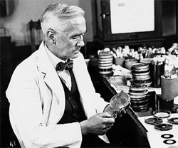 Povestea penicilinei ar suna cam aşa: Alexander Fleming nu a curăţat locul său de muncă înainte de a pleca în vacanţă într-o zi din 1928. Când a venit înapoi, Fleming a observat că exista o ciupercă ciudată pe unele din culturile sale. Mai ciudat era faptul că bacteriile nu puteau să prospere în apropierea acestor culturi. Deşi a fost primul care a observat proprietăţile terapeutice ale mucegaiului cultivat într-un anume mod, Fleming nu a avut resursele pentru a duce la bun sfârşit această descoperire, aşa că alţi cercetători au preluat-o după câţiva ani şi au elaborat o tehnică de producere a penicilinei.