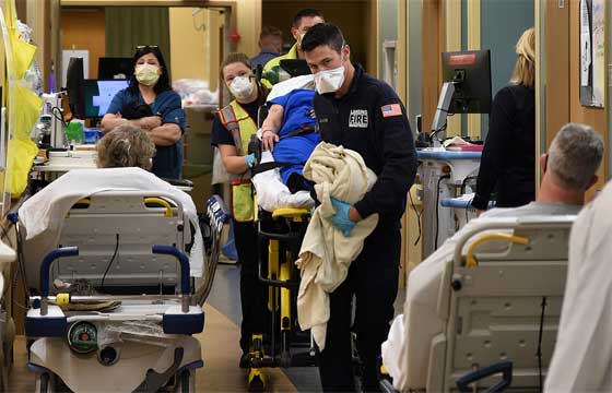 În Lansing, Michigan, de exemplu, la Spitalul Sparrow s-a înregistrat un aflux masiv de pacienți foarte bolnavi care au fost aliniați pe tărgi pe holurile unității din cauza lipsei de paturi disponibile.