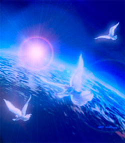 Toţi îmbrăcaţi într-un veşmânt sub formă de ie ţărănească până deasupra genunchilor, fără guler, cu mâneci largi şi foarte albe. Mă uitam nesăturându-mă la aceste entităţi, cât de numeroase erau… aproape că nu vedeam orizontul acelui lan de îngeri… şi toţi mă priveau cu ochii blânzi şi atenţi la mine, parcă aşteptând să le spun eu ceva. Aveam un sentiment de jenă şi ruşine, ştiind că eu nu am meritul să fiu atât de bine primit de aceste fiinţe sublime, văzându-mă pe mine însumi aşa cum sunt, de fapt, în viaţa de zi cu zi, în tot ceea ce fac. Am avut mereu sentimentul că mi se atribuie o atenţie exagerată din partea tuturor celor prezenţi acolo şi nu înţelegeam care e meritul meu la toate acestea. La un moment dat, la orizontul întunecat şi violet, au apărut un fel de lumini alternante, ca luminile unui fulger puternic din depărtare, care deveneau tot mai evidente ca intensitate cu cât priveam mai atent la acea distanţă. Din acel moment, cu cât mă focalizam mai atent să înţeleg ce se petrecea, de fapt, cu acea lumină, care parcă trecea de la dreapta la stânga orizontului acelui lan de îngeri, în adâncime, simţeam o stare de iubire atât de profundă şi evidentă care mă sufoca puţin câte puţin, făcându-mă să ard interior într-un foc mistuitor şi deosebit de plăcut şi euforizant. Îmi venea să plâng de Dor, simţeam o chemare cum nu vă puteţi imagina, către cineva sau ceva de care mă simţeam atras irezistibil şi pe care nu-1 puteam desluşi în acea dimensiune de un violet total. În acelaşi timp, toată acea mare de îngeri a căzut la pământ cu faţa în jos, rămânând aşa până ce acea lumină a trecut de tot, pierzându-se în orizontul întunecat violet şi vizibil luminat totodată. Odată trecută acea lumină ca un glob imens de foc, am început să simt cum acea stare sfâşietoare de iubire care mă copleşise total se estompa acum gradat, lăsându-mi senzaţia că revin cu picioarele pe pământ, un pământ cu care eram obişnuit din viaţa de zi cu zi. Îngerii s-au ridicat de la pământ reluându-şi cu toţii aceeaşi poziţie în picioare, cu ochii aţintiţi către mine, parcă aşteptând cu mare nerăbdare să le spun ceva sau să le cer să facă ceva pentru mine, la fel ca înainte, ca şi cum nimic nu s-ar fi petrecut. Mă priveau cu aceeaşi uimire şi dorinţa de a mă servi.