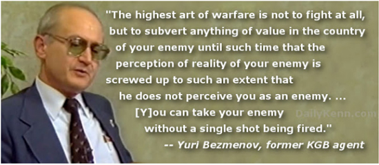 Following are excerpts from Edward Griffin’s 1986 interview with Yuri Bezmenov, who defected to the US in 1970 from Soviet Russia.