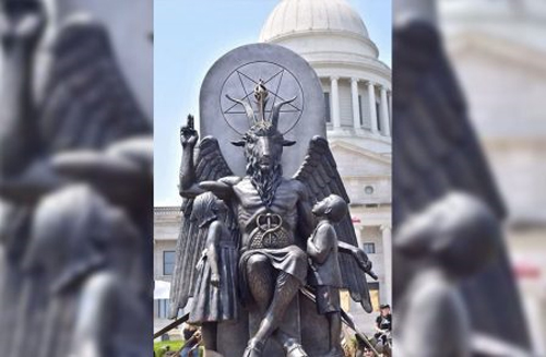 La statue de près de 3 mètres de haut représente Baphomet, une créature ailée, homme à tête de bouc. Ce personnage important dans les mouvements occultes, entouré de deux enfants, a été installé à Little Rock sur le terrain du Capitole de l’État de l’Arkansas.