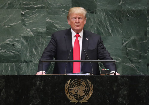 La Sesiunea O.N.U. din 18-20 septembrie 2018, când Donald Trump a lansat doctrina sa naționalistă, denumită de presa favorabilă „realism principial”, sintetizată în sloganul: „America is to Americans! America first!”, (America este a americanilor! America pe primul loc!) a fost întâmpinată ostil, cu vehemente critici. Alocuțiunea sa a fost apreciată de presa europeană ca o „nebunie periculoasă”, „apocaliptică” (presa germană!), alții considerau speech-ul său „vulgar și incoerent, plin de formulări șocante” (presa franceză!) iar președintele Franței însuși, Emmanuel Macron, s-a delimitat de „unilateralismul lui Trump” şi a cerut liderilor prezenţi la discuţii să se delimiteze de mesajul lui Trump.