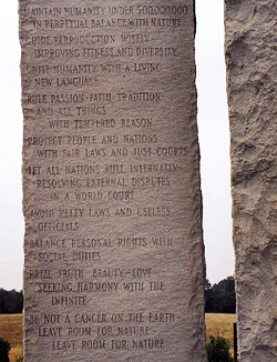 P: „Clubul de la Roma” a declarat în anii ‘70 într-una din publicaţiile lor (posibil în Omenirea la punctul de răscruce) că: fie rata natalităţii trebuie scăzută, fie rata mortalităţii trebuie crescută. Institutul Max Planck crede că populaţia lumii trebuie redusă la 2 miliarde de oameni. În SUA există aşa-numitul „Stonehenge American” unde o inscripţie gravată pe un bloc de 100 tone de granit arată că populaţia lumii trebuie să fie redusă la 500.000 de milioane de oameni pentru a se ajunge la „Era raţiunii”. Analizând ipoteza aşa-zisei „suprapopulări” s-a constatat un fapt interesant, şi anume că numai statul Texas ar putea hrăni toate cele 6 miliarde de oameni. Dacă cineva ar înghesui cele 6 miliarde de trupuri cu o greutate de aproximată la 80 kg şi un volum aproximat la 80 l, unul lângă altul, în forma unui cub, laturile cubului vor măsura numai 800 m. În Austria am putea ascunde acest cub în cea mai apropiată vale. Nu cred în aşa-numita „suprapopulare”, mai degrabă presupun că fanaticii globalizării nu au nevoie de 6 miliarde de sclavi aşa că vor să reducă populaţia la o zecime.