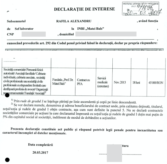 La prima vedere, nimic ciudat. Deși, totuși, parcă ar fi ceva ciudat: profesorul Rafila este și salariat al Institutului „Prof. Dr. Matei Balș”, de ce ar avea nevoie de un contract cu fundația omonimă?