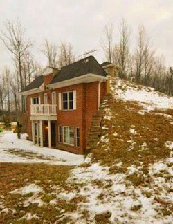 Privită din faţă, pare să fie o casă obişnuită, construită din cărămidă. Dar această casă reprezintă o versiune, la scară mai mare şi cu o faţadă obişnuită, a unei căsuţe din poveşti, a unei locuinţe de hobbit. După ce o priveşti din lateral, te vei lămuri numaidecât în ce fel a fost construită. Imobilul se află în zona Clinton, Maryland şi dispune de trei dormitoare şi două băi, fiind destul de spaţios.