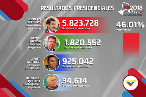 Înainte de alegerile prezidenţiale din Venezuela de la 20 mai, alegeri care au inclus un candidat al opoziţiei, Henri Falcon, din comunitatea de afaceri, guvernul SUA a anunţat că nu va recunoaşte rezultatul, indiferent cine va câştiga. Statele Unite au mers atât de departe încât l-au ameninţat pe domnul Falcon cu sancţiuni dacă va candida la alegeri.