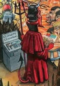Implicațiile imaginii de mai sus sunt imense. Aceasta sugerează că „schimbările climatice” sunt un eveniment artificial, controlat de la distanță de către diavolul însuși. Și, în mod surprinzător, diavolul ține în mână chiar acel număr al revistei The Economist, ca și cum ar fi „planul general”.