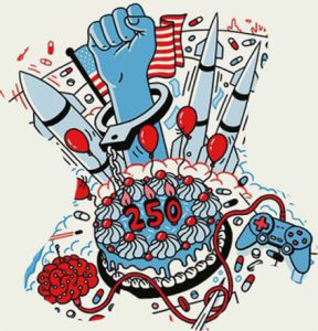 Tortul din fața steagului american se referă, cel mai probabil, la cea de-a 250-a aniversare a Statelor Unite. Aceasta se datorează faptului că Statele Unite au fost fondate în 1776. Știți ce altceva a fost fondat în 1776? Organizația ocultă bavareză Illuminati. Sărbătoresc și ei aceasta? Deși Statele Unite au motive de sărbătoare, tortul de pe coperta revistei celebrează elita ocultă care domină agenda anti-națiuni și pro-globalistă.