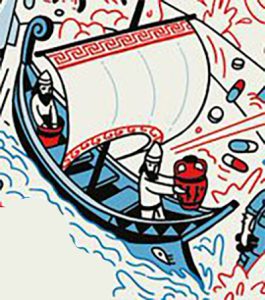 Unele indicii vizuale sugerează că barca este o triremă provenind dintr-o civilizație antică mediteraneană, precum Sumeria sau Fenicia. Aceste culturi își împodobeau adesea bărcile cu ochi pentru a alunga răul și a le conferi o conștiință supranaturală care să le ferească de pericol.