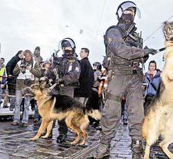 2 aprilie 2008. „Este complet nejustificată intervenţia a două sute de mascaţi împotriva a 50 de persoane”, spune Diana Hatneanu de la APADOR-CH. Ziariştii sunt uimiţi de desfăşurarea impresionantă de forţe din zona Timpuri Noi, dar o pun pe seama codului galben de securitate din timpul Summitului NATO. |