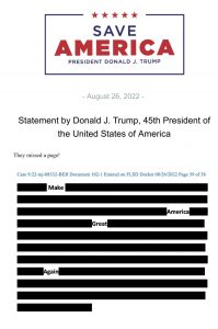 La sfârșitul lunii august, președinte Donald Trump a criticat motivarea scrisă, dar puternic redactată, a Departamentului de Justiție pentru cererea de mandat de percheziție a FBI la casa sa de la Mar-a-Lago.