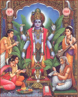 „Vishnu, Menţinătorul, susţine totul în Creaţie şi are puterea nesfârşită de a se manifesta sub o infinitate de forme. În marele Ocean Cosmic, el se sprijină atât pe Soarele Infinitului, cât şi pe străvechiul Spirit al existenţei, care este Stăpânul Universului.” – Vishnu Purana