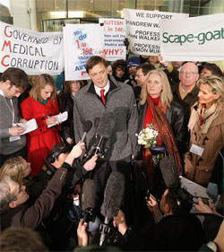 „Sunday Times a aflat că patru, probabil cinci din aceşti copii erau acoperiţi de studiul plătit de Legal Aid Board. Şi Wakefield primise aproximativ 55.000£ să-i ajute, găsind dovada ştiinţifică a unei legături. Wakefield nu îşi informase colegii sau autorităţile medicale despre acest conflict de interese nici înainte şi nici după efectuarea studiului.”