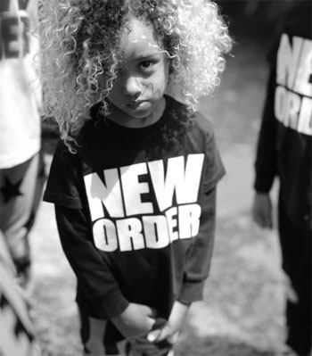 Sad looking children wearing oppressive-looking “New Order” shirts … as in “New World Order”.