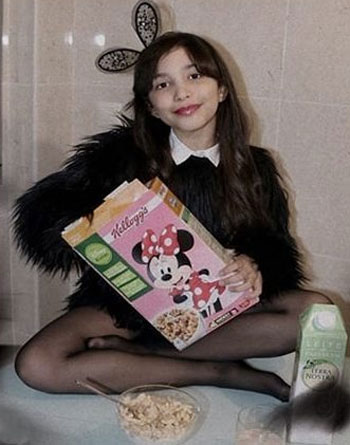 They dressed this girl as a Playboy bunny. They added the Minnie Mouse cereal to emphasize the “I’m just a child” aspect of it all. Sickening.