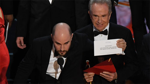 The presenters for the final award, Warren Beatty and Faye Dunaway, were incorrectly given the best actress award envelope. A confused Beatty saw Emma Stone’s name and La La Land, and handed the envelope to Dunaway, who then announced the musical as the Best Picture winner.