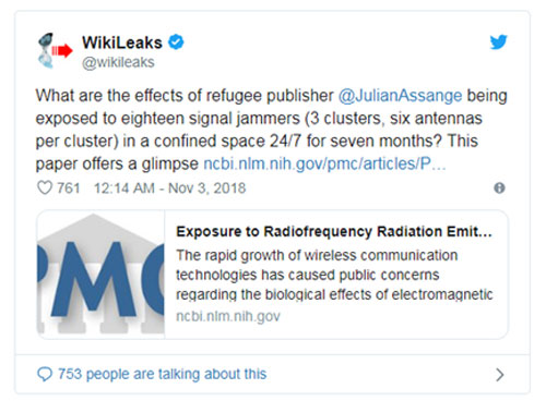 The above health concerns are coupled with surveillance technology that was a requirement for Assange to remain in the embassy, including signal jammers and all of the additional technology that is emitting various electromagnetic waves.