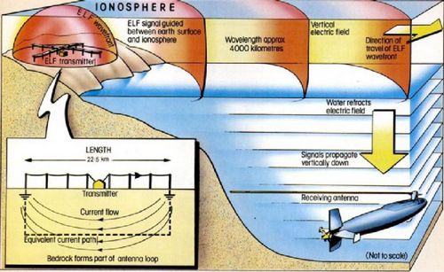 The facilities at Clam Lake were a link in the chain of the development of ionospheric heaters which are the distinguishing element of today’s New Manhattan Project. The use of electromagnetic energy distinguishes the New Manhattan Project from the traditional cloud seeding industry and has always served as the NMP’s common thread. The facilities at Clam Lake were the immediate precursors of today’s ionospheric heaters. Isn’t it logical then, that the facilities at Clam Lake might also have been used in classified weather modification experiments? Ionospheric heaters are known to be able to modify the weather as well as communicate with submerged submarines. Although classified projects are known to have existed at Clam Lake, the only information that has been declassified concerns submarine communications.