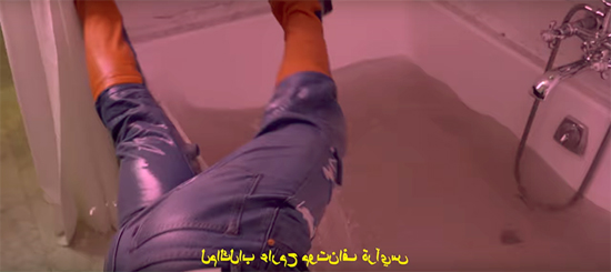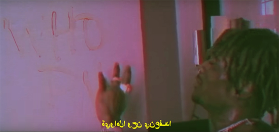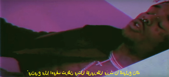 Subtitrarea în arabă pare că ar traduce versurile cântecului.